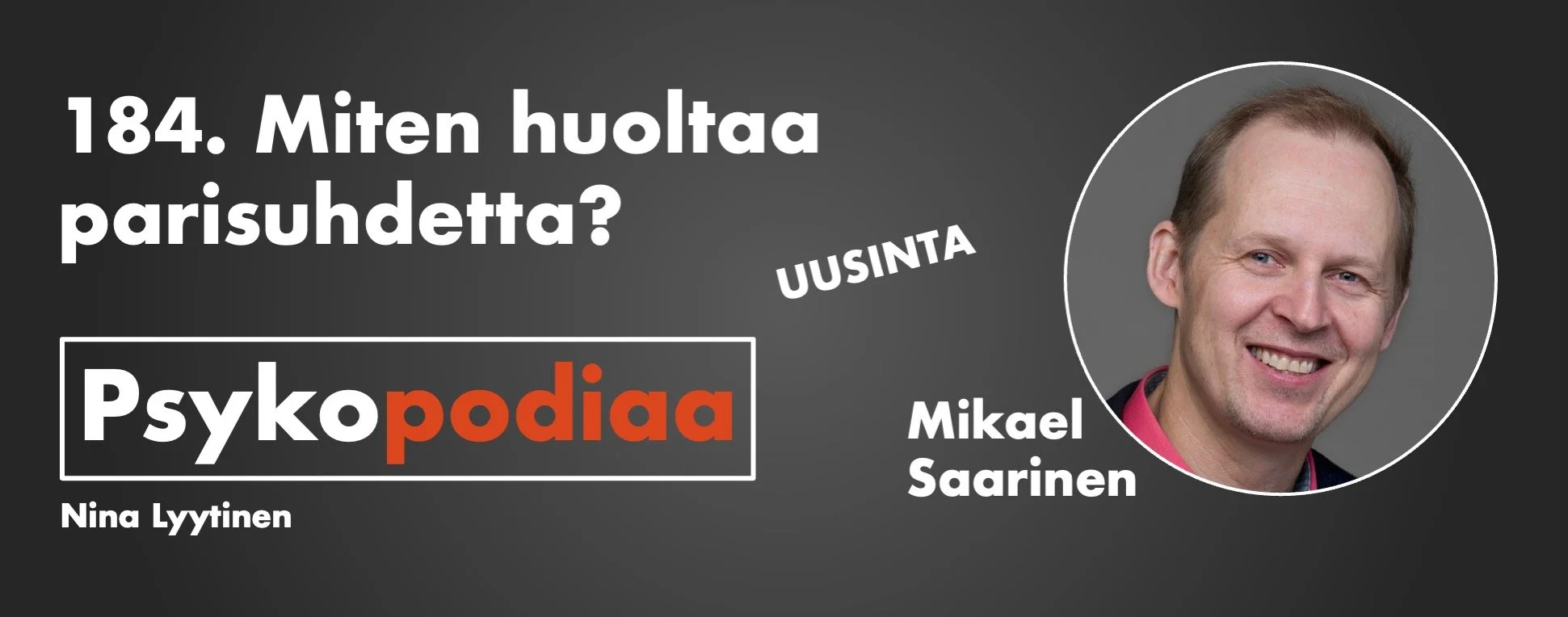 Tässä jaksossa psykologi Nina Lyytinen keskustelee parisuhteesta ja sen huoltamisesta psykologi, psykoterapeutti, tietokirjailija Mikael Saarisen kanssa. Saarinen on kirjoittanut aiheesta yhdessä Kari Kanalan kanssa tietokirjan Parisuhdekorjaamo (Otava 2021).